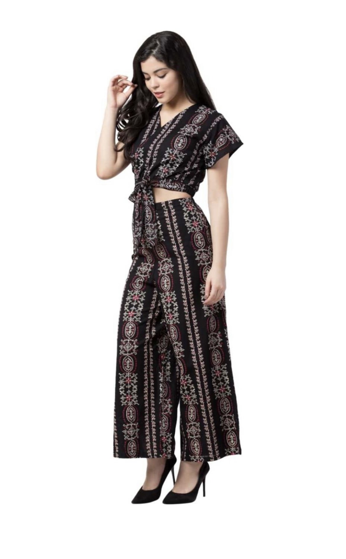 Classy and Stylish, this Co-Ords Set is sure to enhance your unique style. Tailored with attractive short sleeves, this scoop neck Co-ords Set lends you an elevated appeal.
