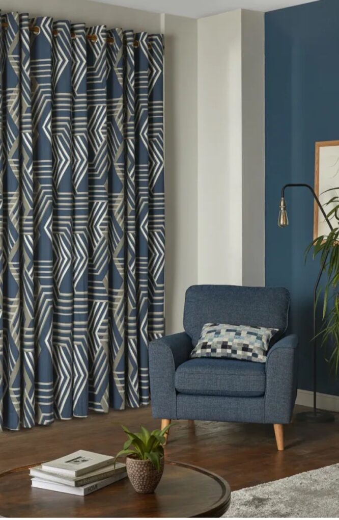 Navy Blue Abstract Print Blackout Curtain (Set of 1)